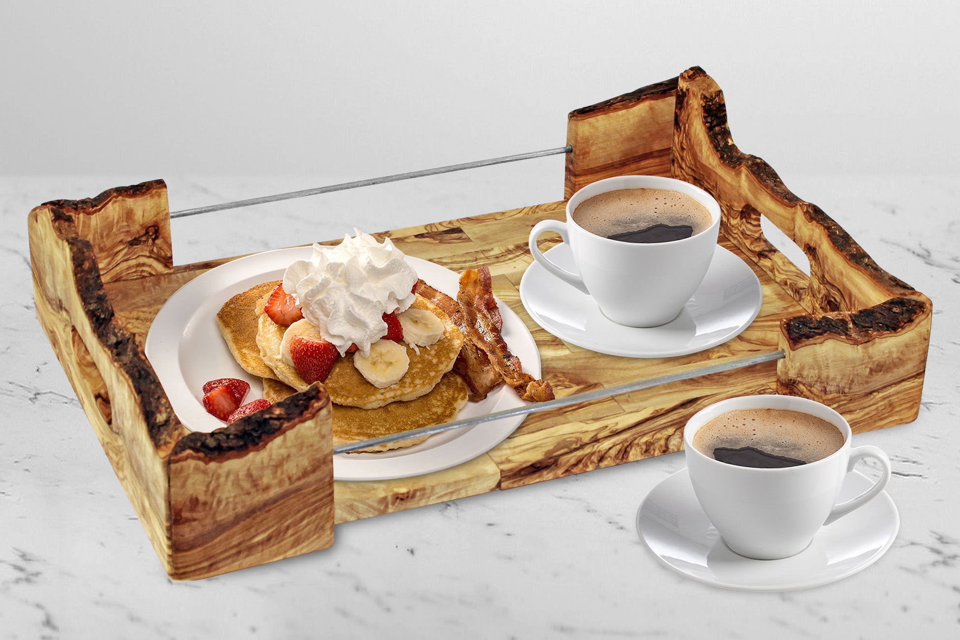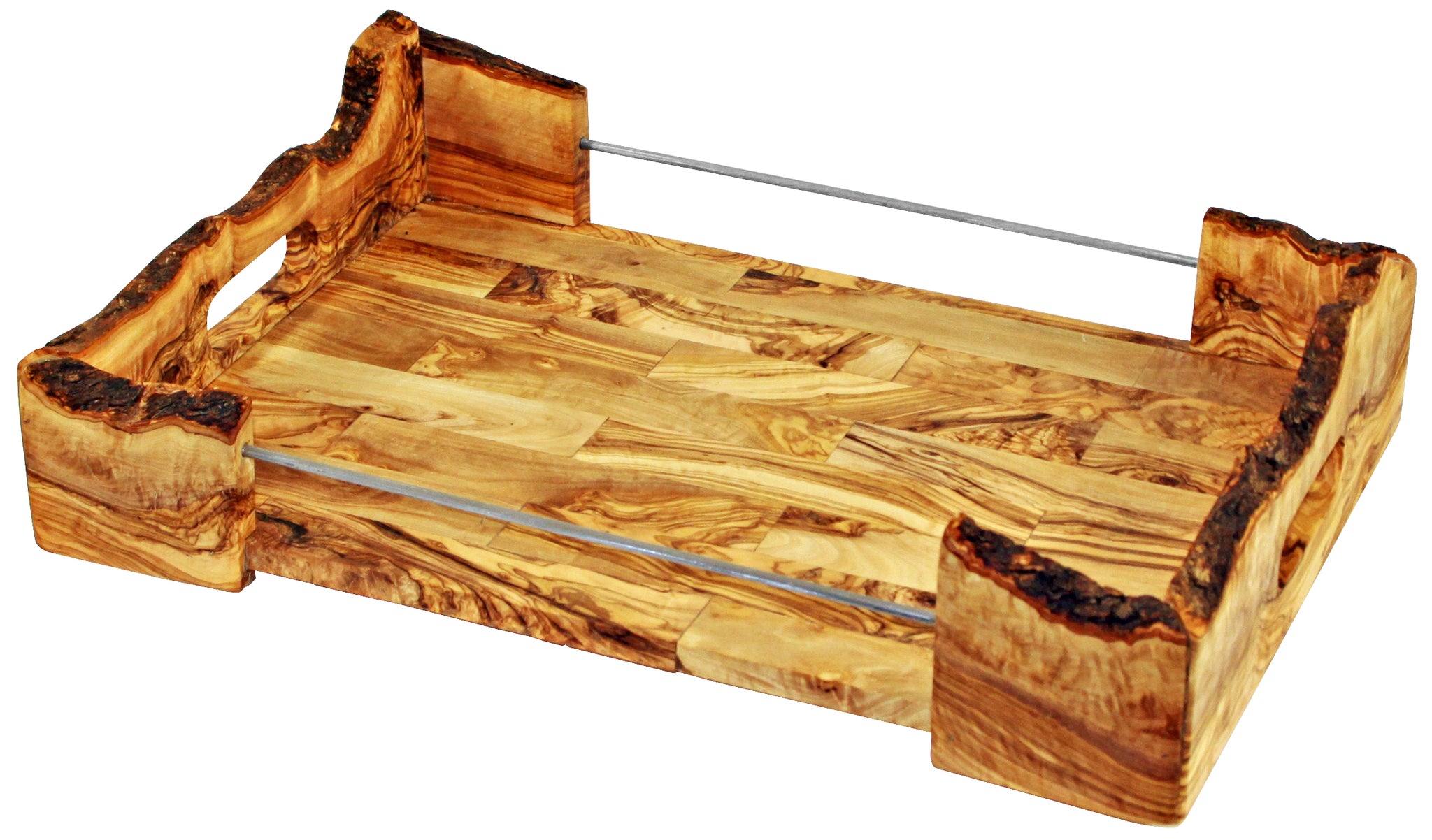 This hand-crafted olive Wood serving tray is truly unique. The stunning Wood grain details and contours make each piece one of a kind.